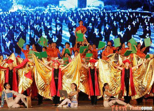在寬35米、高7米的巨大屏幕上,鮮紅的青春火焰熊熊燃起。青春的理想總是和英雄的名字連在一起。