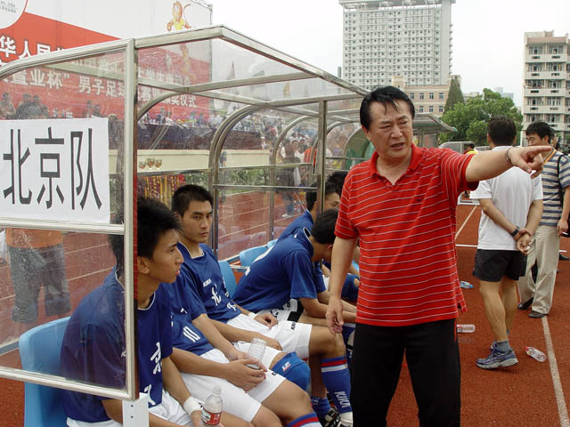 北京市副市長范伯元和我校黨委書記焦文俊親臨賽場為足球隊加油打氣。
