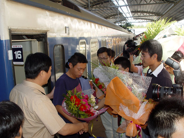 9月7日上午,我校參加大運會的運動員乘坐T110次列車從上海順利返京。