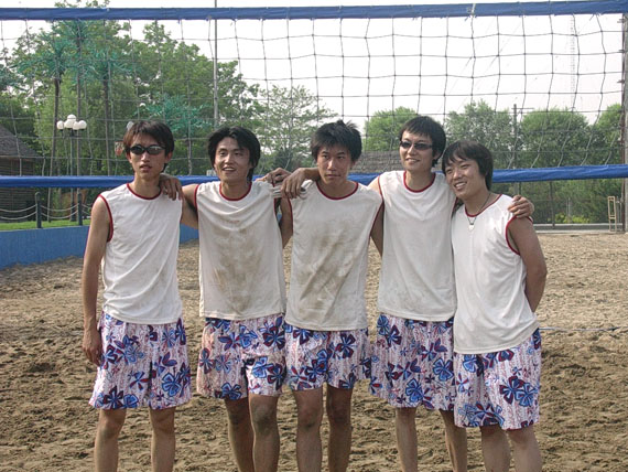 球隊合影:(左起:張若松,車雪,付旭東,胡欣,翟崎)