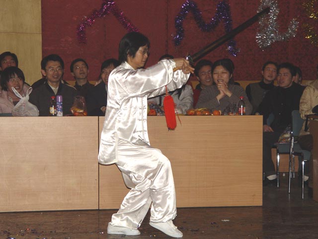 姜波和李海華老師的武術表演有板有眼。