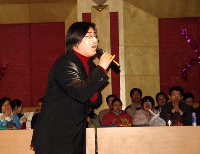 學院分團委許海峰老師的行頭和歌喉頗有歌星郭峰的風采