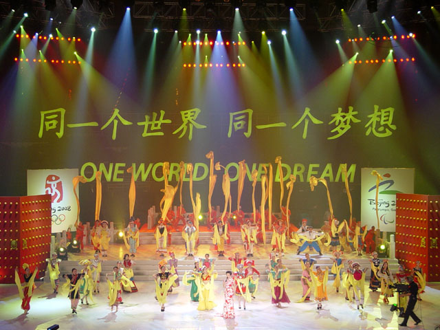 著名歌星劉歡、那英共同把2008奧運會主題口號演繹為同名歌曲《同一個世界,同一個夢想》
