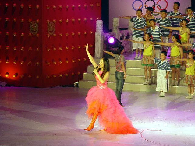由臺灣歌手高明駿和大陸歌手白雪、甘萍聯(lián)袂表演的《通向2008》讓觀眾遐想萬千