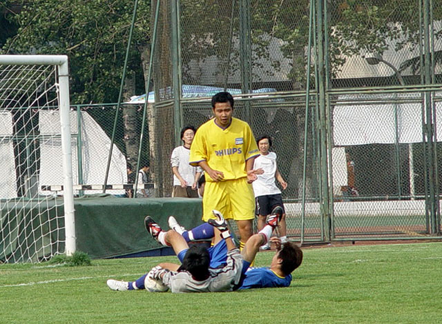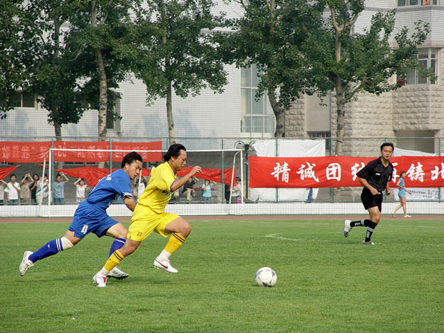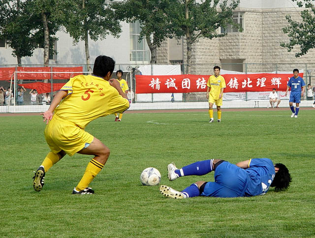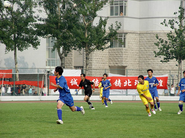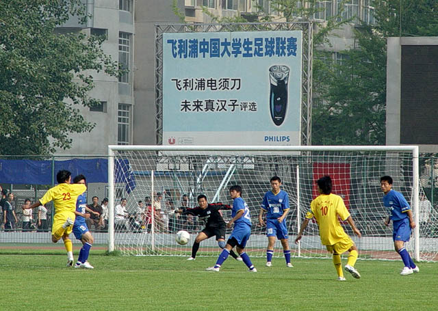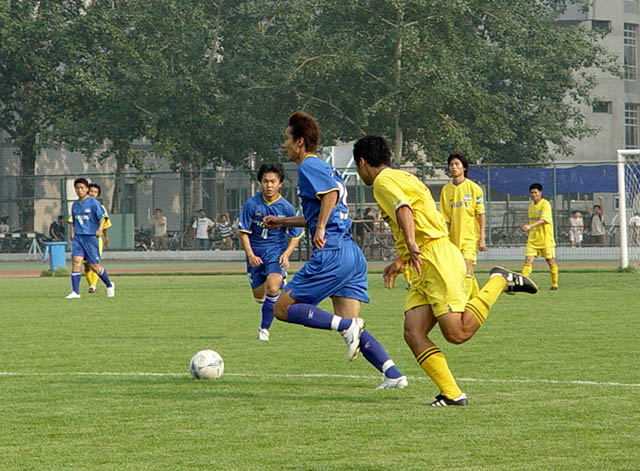 在6月7日下午3:00舉行的第五屆飛利浦中國(guó)大學(xué)生足球聯(lián)賽總決賽小組賽最后一輪比賽中,我校足球隊(duì)(藍(lán)方)以3:0戰(zhàn)勝?gòu)V東工業(yè)大學(xué)足球隊(duì)(黃方),保持了全勝的戰(zhàn)績(jī),以總分9分名列小組第一,順利進(jìn)入下一階段的比賽。8日賽事休息一天,9日開(kāi)始八強(qiáng)將捉對(duì)廝殺,爭(zhēng)奪進(jìn)入前四名的機(jī)會(huì)。