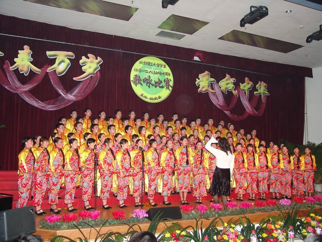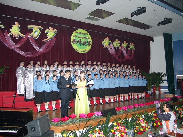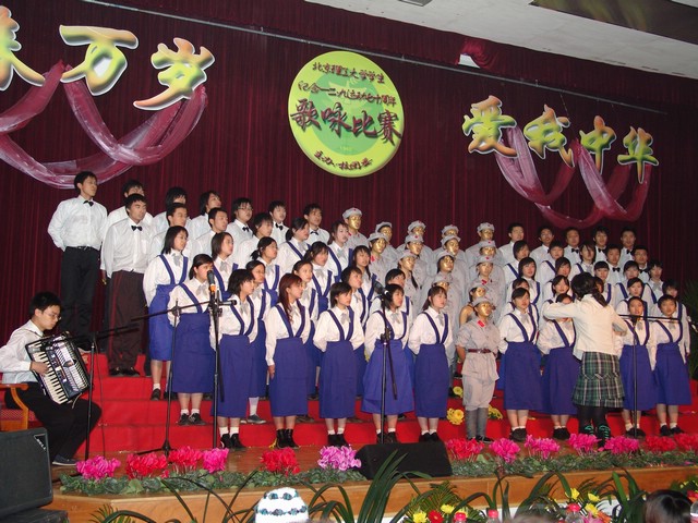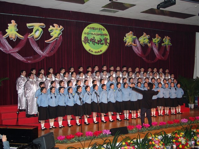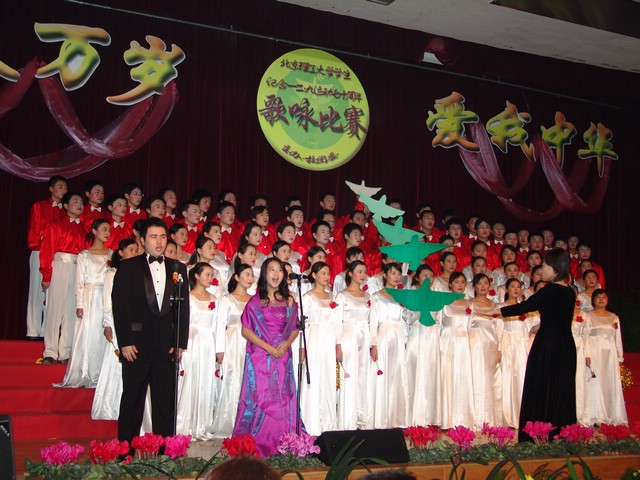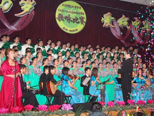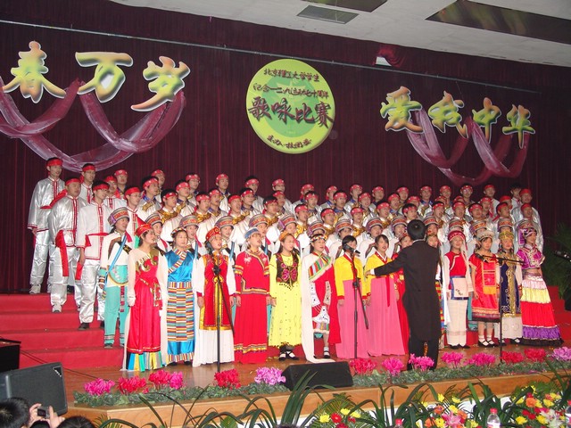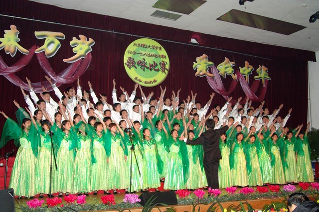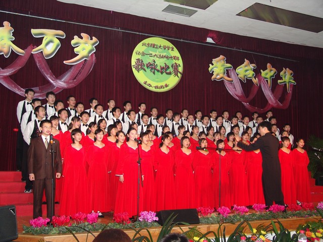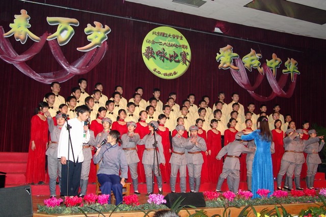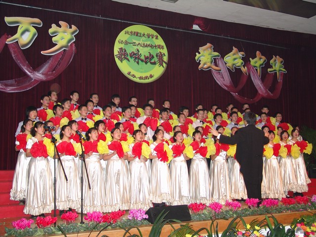紀念一二•九運動歌詠比賽是校團委在全校范圍內組織的一項傳統活動,也是對廣大同學進行愛國主義教育一種有效的形式。今年恰逢一二•九運動七十周年、抗日戰爭勝利六十周年、我校建校六十五周年,為充分把握這些有利的時機,校團委結合正在開展的增強團員意識教育活動,對今年的一二•九歌詠比賽進行了精心的組織。在指定曲目中特將《北京理工大學校歌》和團歌《光榮呵,共青團》作為候選曲目。在抽簽曲目中特意以時間為序,安排了抗戰年代的典型曲目。來自全校十一個學院的參賽隊伍在比賽中為全校師生演唱了《抗敵歌》、《畢業歌》、《五月的鮮花》、《愛我中華》等膾炙人口的歌曲。曲譜上凝聚歷史的滄桑,絲竹間澎湃和平的祈盼。靚麗的服裝、美妙的歌聲、精致的排演、細膩的描述,同學們飽含深情的演出,贏得到場觀眾熱烈的掌聲。歌詠比賽結束后,播放了由校學生電視中心為本次活動專門制作的短片,回顧了各學院在近四十天的籌備過程中的點點滴滴。緊張認真的排練、簡短真誠的祝福,既體現了各學院對整個活動的重視支持,也體現青年學子昂揚的斗志和對祖國的熱愛。