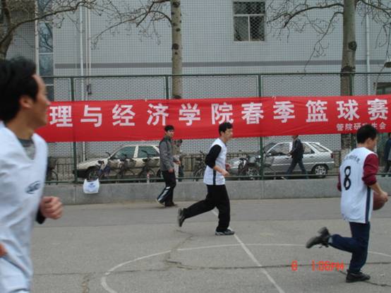 為調動更多研究生參加體育活動、鍛煉身體的積極性,響應教育部“每天鍛煉一小時,健康工作50年,幸福生活一輩子”的號召,在學院領導的殷切關懷和廣泛取得同學意見的基礎上,經過研究生會的精心組織與各班班委的大力協調,管理與經濟學院研究生春季籃球聯賽于3月8日在學校東籃球場揭開了帷幕。