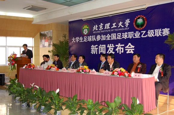 日前,我校大學生足球隊參加全國足球職業乙級聯賽新聞發布會在國際教育交流中心多功能廳舉行,中國大學生體育協會副秘書長張雁軍、中國足協青少部主任馮劍明、北京市教委副主任杜松彭、北京市足協管理中心主任李維淼、北京市足協秘書長張希崗、北京國安俱樂部副總經理魏克興、浪潮集團副總裁張磊等領導出席了新聞發布會。新聞發布會由我校宣傳部副部長楊海濱主持。