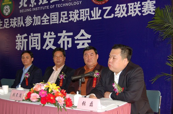 浪潮集團副總裁張磊講話,作為北京理工大學足球隊的戰略合作伙伴,浪潮集團除捐款100萬作為球隊的經費之外,還將致力與與北京理工大學產、學、研等方面的長期合作。
