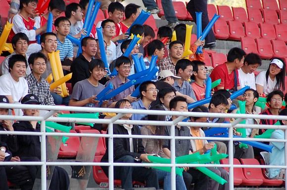 同屬國(guó)防科工委院校的哈爾濱工業(yè)大學(xué)也組織了百余名球迷前來(lái)為我校足球隊(duì)加油助威。