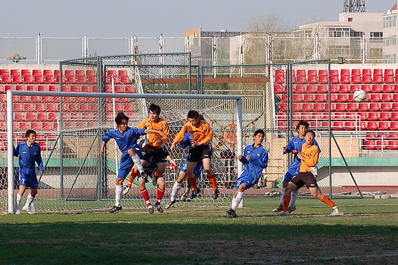 皮球劃了一道優(yōu)美的曲線,越過(guò)守門員的頭頂,直抵網(wǎng)底,比分變?yōu)?:0。