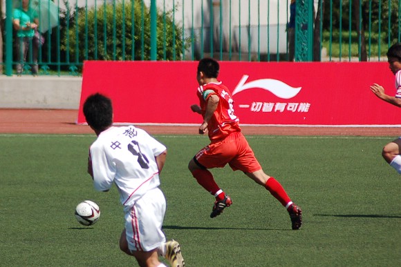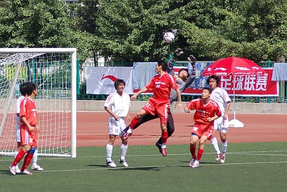 6月28日,李寧杯第六屆中國大學生足球聯賽決賽階段的比賽在遼寧沈陽正式開戰,我校足球隊(著紅色隊服)在小組賽中首戰面對青島大學足球隊。由于我校足球隊曾連續獲得三屆聯賽冠軍,今年又首次參加全國職業足球乙級聯賽且戰績輝煌,使得各隊都非常重視與我隊的比賽。