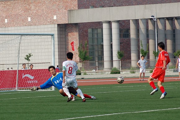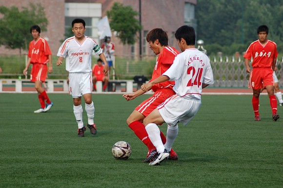 7月7日下午,我校足球隊在沈陽理工大學足球場迎來了李寧杯第六屆中國大學生足球聯(lián)賽的半決賽,對手為東華大學足球隊。東華大學隊可謂是我校的老對手,在2004年全國大運會的足球決賽中與我校足球隊戰(zhàn)成平局,最后靠點球大戰(zhàn)獲得冠軍,我校足球隊屈居第二(點擊進入相關報道)。在2005年飛利浦第五屆中國大學生足球聯(lián)賽的半決賽中,由于我校足球隊處于新老交替時期,再次以0:2告負東華大學隊(點擊進入相關報道),在三、四名決賽中又負于同濟大學隊從而名列第四(點擊進入相關報道),而東華大學隊則在決賽中戰(zhàn)勝中國人民大學隊獲得冠軍。