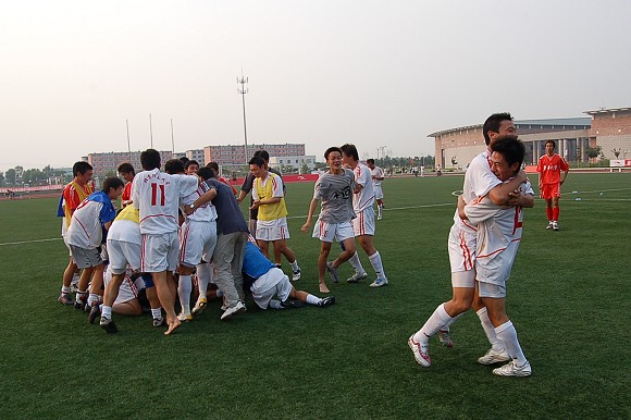 在另外一場半決賽中,太原理工大學足球隊與山東大學足球隊同樣戰(zhàn)的難解難分,90分鐘內(nèi)也戰(zhàn)成了1:1平,在最后的點球決戰(zhàn)中,太原理工大學足球隊技高一籌,最后以4:2的總比分將山東大學足球隊淘汰出局,成為了今年大學生足球聯(lián)賽中一匹最黑的黑馬。7月8日下午,我校足球隊將與太原理工大學足球隊進行最后的決戰(zhàn),三屆冠軍與最大黑馬到底鹿死誰手,請大家拭目以待。