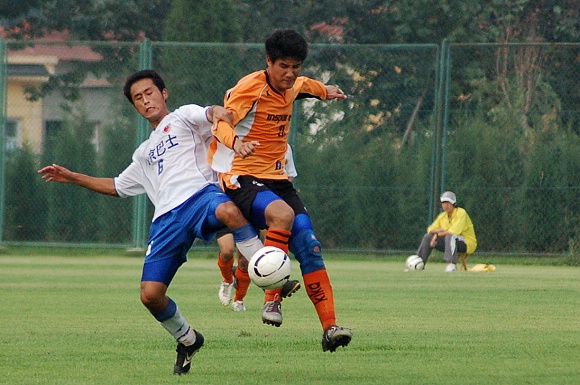 8月19日下午4點,我校足球隊迎來了2006全國足球乙級聯賽下半程的首場比賽,此場比賽在北京朝來體育活動中心舉行,由我校足球隊客場挑戰北京巴士隊,最終我方以1:0戰勝對手,全取3分。由于本輪原榜首球隊新疆體彩隊在主場被排名倒數第二的青島黎明隊以1:1逼平,積分只達到19分,而原本排名次席的我校足球隊此次比賽戰勝北京巴士后積分變為20分,所以我校足球隊在首輪輪空的情況下,此輪重返北方賽區第一的位置,新疆體彩隊淪為第二;上輪排名第三的哈藥毅騰隊此輪也在客場被天津東麗隊以2:2逼平,積18分,依然排名第三;而天津火車頭隊也在客場被積分墊底的遼寧中巴隊以0:0逼平,積16分,排名第四。目前這四支隊與其他隊伍積分已經拉開,進入年底復賽大局已經基本確定。