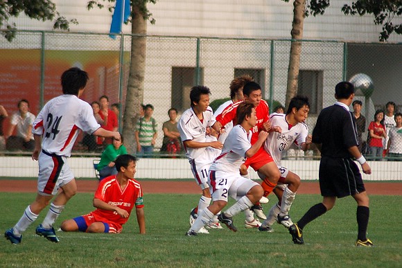 8月26日下午4點(diǎn),我校足球隊(duì)迎來(lái)了2006全國(guó)職業(yè)足球乙級(jí)聯(lián)賽下半程的第二場(chǎng)比賽,在主場(chǎng)迎戰(zhàn)目前排名北方賽區(qū)第四的哈藥毅騰隊(duì),最終對(duì)手在裁判的“關(guān)照”下與我方以0:0戰(zhàn)平,雙方各取1分。哈藥毅騰隊(duì)在今年乙級(jí)聯(lián)賽開(kāi)賽之前就是呼聲極高的所謂“沖甲”熱門(mén)隊(duì)伍,但其在比賽中的各種表現(xiàn)卻不時(shí)讓人大跌眼鏡。在上半程我校足球隊(duì)客場(chǎng)與其的比賽中,該隊(duì)隊(duì)員的踢法就已經(jīng)讓人不敢恭維(點(diǎn)擊進(jìn)入相關(guān)鏈接),這次比賽部分場(chǎng)面更是令人匪夷所思,看來(lái)中國(guó)足球無(wú)論是球員還是裁判都離足球大國(guó)的地位還有相當(dāng)遠(yuǎn)的路程。