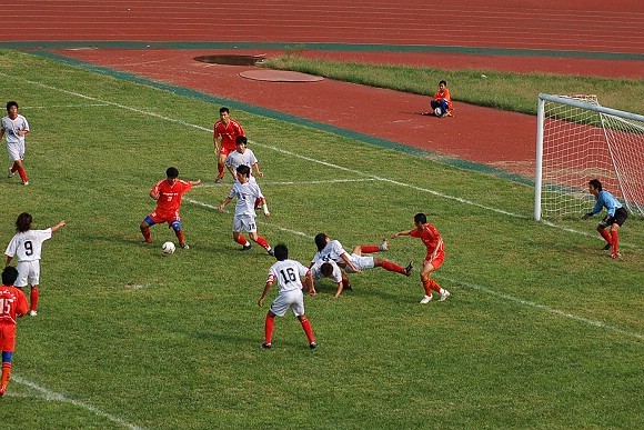9月2日下午3點(diǎn),我校足球隊(duì)迎來(lái)了2006全國(guó)足球乙級(jí)聯(lián)賽下半程的第三場(chǎng)比賽,在山東淄博市臨淄區(qū)體育中心客場(chǎng)挑戰(zhàn)目前北方賽區(qū)排名墊底的青島黎明隊(duì),最終我校足球隊(duì)以七個(gè)球的優(yōu)勢(shì)再次狂勝對(duì)手,全取三分,并且創(chuàng)造了本年度乙級(jí)聯(lián)賽中最懸殊的比分。在今年上半程的首場(chǎng)比賽中,我校足球隊(duì)在主場(chǎng)曾以4:0大勝對(duì)手(點(diǎn)擊進(jìn)入相關(guān)鏈接)。此場(chǎng)比賽之前,青島黎明隊(duì)以2勝2平7負(fù)僅積8分的成績(jī)排名北方賽區(qū)末位,而我校足球隊(duì)在少賽一輪的情況下,以6勝3平1負(fù)積21分的成績(jī)與天津火車頭隊(duì)積分相等,僅以凈勝球的劣勢(shì)名列北方賽區(qū)次席。此場(chǎng)比賽的準(zhǔn)備會(huì)上,金志揚(yáng)總教練要求隊(duì)員對(duì)此場(chǎng)比賽不僅要志在必得全取3分,更要努力多進(jìn)球,以彌補(bǔ)與天津火車頭隊(duì)凈勝球方面的差距。