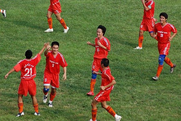 這還沒有意味著進(jìn)球狂潮的結(jié)束,第29分鐘,我方后衛(wèi)10號(hào)孫尚突發(fā)奇兵,幾乎完全“拷貝”了張宇的第一個(gè)進(jìn)球,打進(jìn)了十分鐘之內(nèi)的第五個(gè)入球!觀眾席和替補(bǔ)席一片狂呼,為這一連串的精彩進(jìn)球而喝彩。