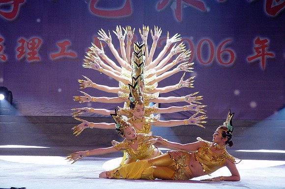 由北京理工大學(xué)陳愛蓮舞蹈學(xué)校表演的《千手觀音》