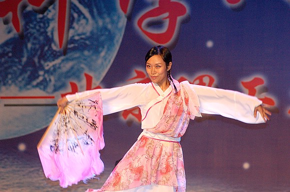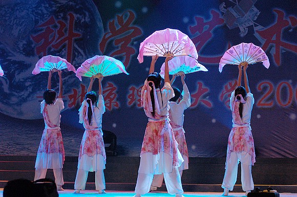由校大學(xué)生藝術(shù)團舞蹈團表演的舞蹈《床前明月光》頗有專業(yè)水準(zhǔn)。