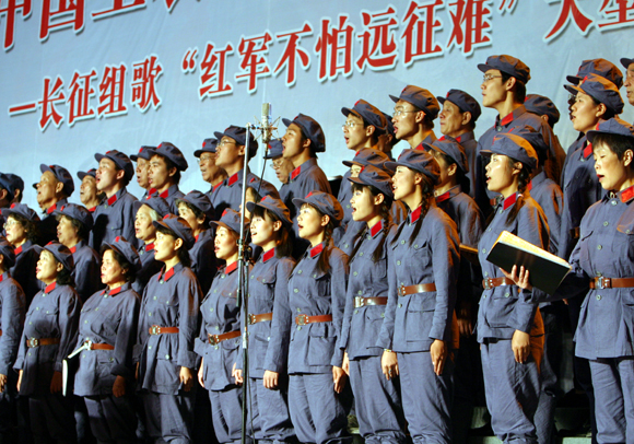 作為我校2006年藝術節的重頭戲,9月21日晚上,長征組歌大型交響合唱音樂會在體育文化綜合館隆重舉行。在長征勝利70周年之際,以長征為主題的音樂會,不僅讓觀眾得到藝術上的享受,更帶領觀眾重溫和回顧了那個硝煙彌漫、充滿著理想與激情的革命年代,弘揚了愛國、愛黨的情懷。