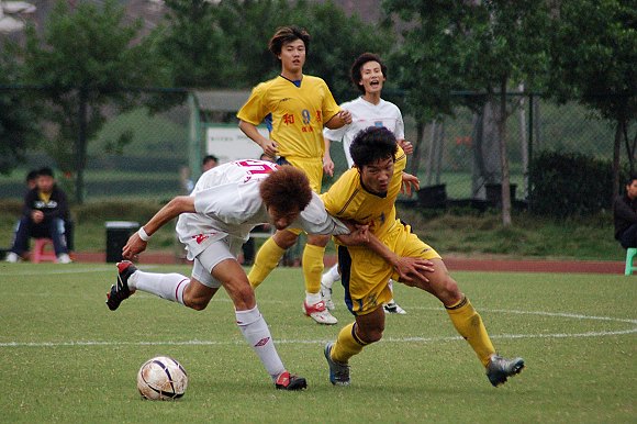 比賽進行到第70分鐘時,我校足球隊員經過多次的拼搶和配合終于迎來了搬回比分的機會,31號前鋒張宇與隊員精彩配合,二龍齊飛突破對方的防線攻至對方門前,張宇一角力度和角度都很刁鉆的勁射終于將比分扳平。