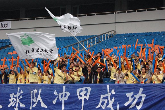 相對于天津火車頭現場球迷幾乎零的紀錄,我校足球隊組織了百余名球迷現場觀戰,熱烈的助威聲幾乎使隊員把今天的主場挪到了北京理工大學東操場。