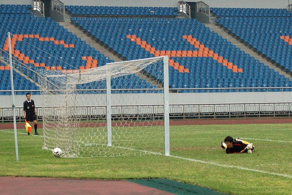 無奈球速太快,角度太刁,守門員也只好望球興嘆,鞭長莫及~~~