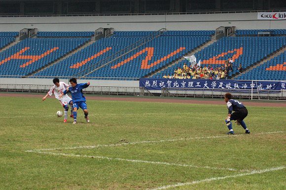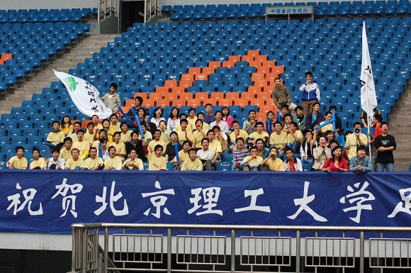 由四川西物科技有限公司和重慶工學院共同組成的我校球迷助威團,今天又打著“熱烈祝賀北京理工大學足球隊沖甲成功!”的巨大橫幅來到了賽場,自從決賽階段的第一場比賽開始,他們就一如既往地大力支持和贊助北京理工大學足球隊,使得我校足球隊所有隊員都感到“賽場如主場,他鄉似故鄉”。