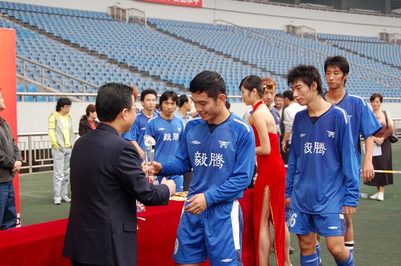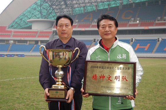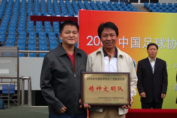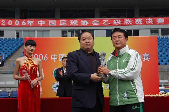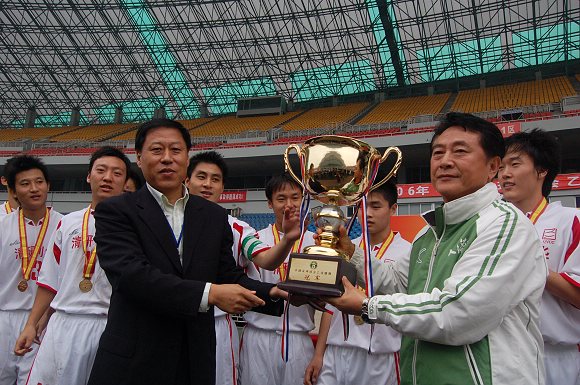 帶領“學生軍”奮勇沖甲并獲得冠軍的我校足球隊總教練金志揚教授當之無愧地榮獲了“最佳教練員”稱號!