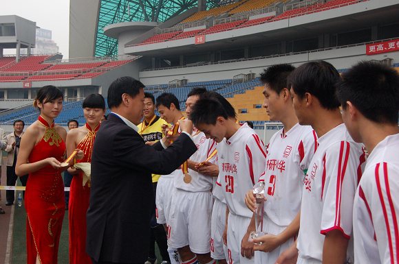 最后由中國足協紀律委員會主任馬成全為我校足球隊頒發金牌。