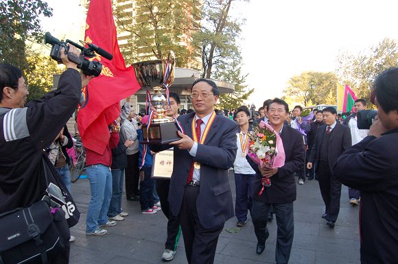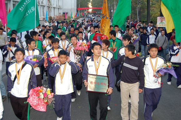 慶祝儀式結(jié)束以后,全體足球隊員在師生員工和球迷的簇擁下從主樓步行至體育館北側(cè),返回駐地,進行休整,據(jù)悉,11月25日左右,我校足球隊將與文體界明星足球隊參加在廣西柳州市舉行的義賽,為希望工程籌款。12月初,我校足球隊還將赴日本參加中、朝、日、韓四國大學生足球邀請賽。