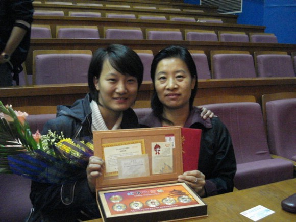 冠軍獲得者李璐及遠(yuǎn)道而來(lái)的媽媽合影留念