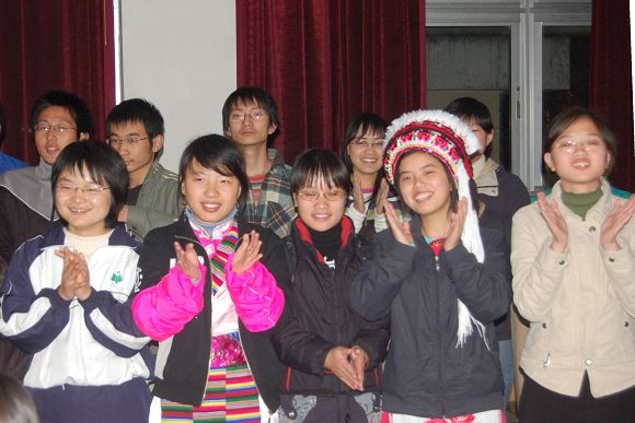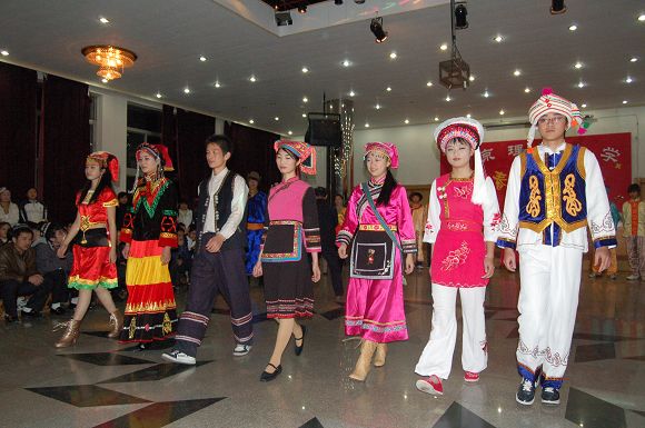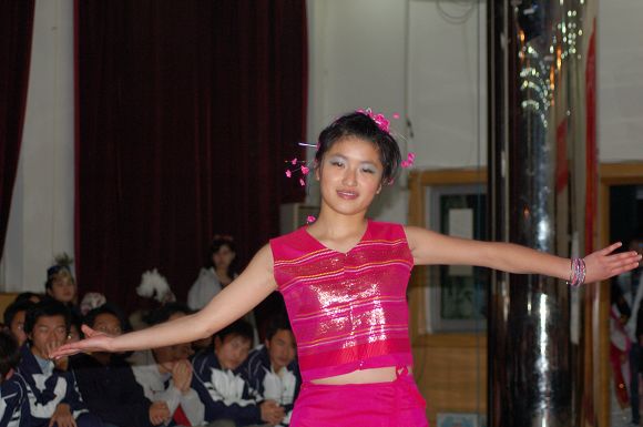 同學們在晚會上展現了各民族特有的服飾、舞蹈、歌曲等。