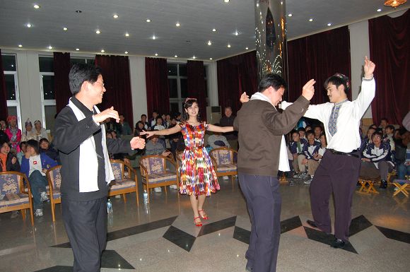 學校部門領導和來賓應邀一起加入了新疆舞的熱情奔放的行列。