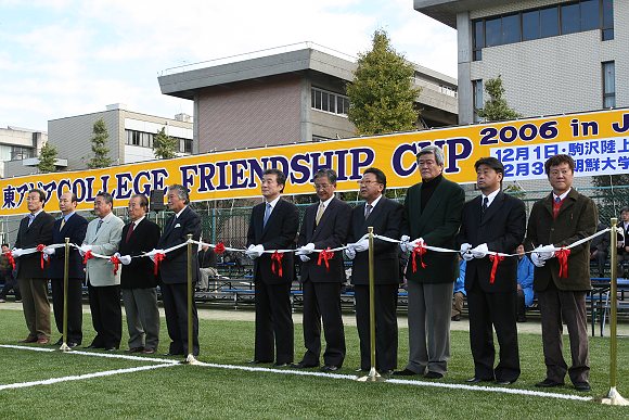 在接著進(jìn)行的決賽比賽中,日本駒澤大學(xué)足球隊(duì)與朝鮮大學(xué)足球隊(duì)在前90分鐘戰(zhàn)成了1:1的平局,但在補(bǔ)時(shí)階段日本駒澤大學(xué)足球隊(duì)打入了關(guān)鍵一球,從而獲得了本屆比賽的冠軍,朝鮮大學(xué)足球隊(duì)獲得亞軍,韓國(guó)漢陽(yáng)大學(xué)足球隊(duì)獲得第三名,我校足球隊(duì)獲得第四名。