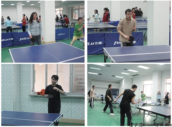 理學(xué)院學(xué)生工作組的老師也在乒乓球桌上一決高下