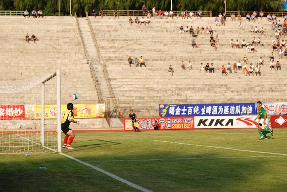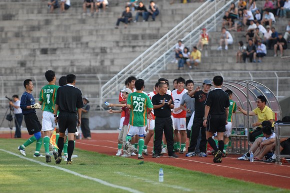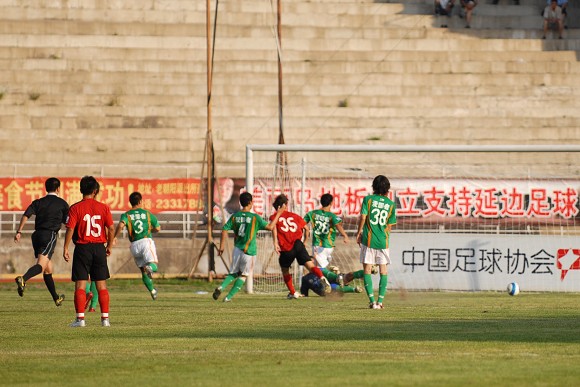 進入下半場,北京愛國者大學生隊體力漸漸不支,幾乎難以攻過半場,延邊隊的進攻也打得流暢起來。鄭林國在左邊路的突破非常犀利,多次創造機會。