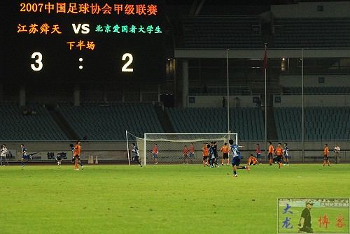 非常可惜的是,在離比賽結束還有5分鐘的時候,守門員孫程的一次撲球脫手,再次給了江蘇舜天鎖定勝局的機會。此后江蘇隊連續換上體力充沛的三名隊員,而北理工直到比賽結束也只換了一名受傷隊員。