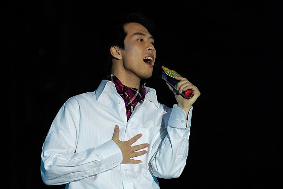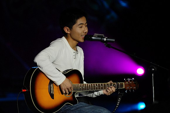 十三號(hào)選手葉祖龍自彈自唱,聲音清澈,他完成了一首非常好聽(tīng)的《中學(xué)時(shí)代》,觀眾報(bào)以熱烈的掌聲。