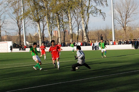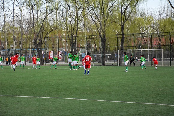 3月25日下午,2008年李寧中國大學生足球聯(lián)賽北京市賽區(qū)預賽在北京體育大學開幕,首先由北京理工大學(綠)VS中國人民大學(紅)。在去年的北京市大學生甲級聯(lián)賽的決賽中,由于北理工兩線作戰(zhàn),頭天剛剛打完對廣州醫(yī)藥的比賽,加上替補陣容發(fā)揮也不好,最終以1:5輸給了人大,屈居亞軍。