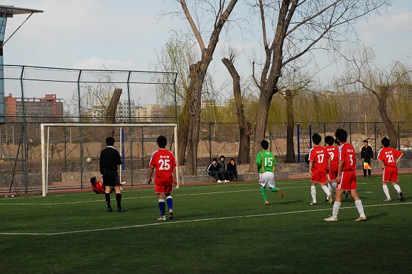 果然,下半場開始后不久,北理工隊的李東昊又一次通過禁區(qū)前的勁射將比分擴大為3:0,人大隊甚至因此更換了守門員。