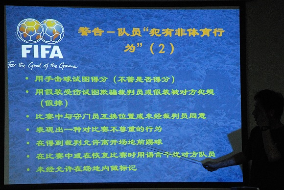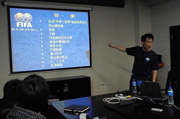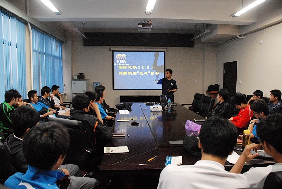 日前,為更好地學習國際足聯2008“熱點”精神,學校足球隊特地請來著名國際級裁判譚海老師,結合國際足聯新規定和國內聯賽執法規則進行了詳細解釋。