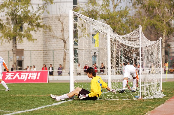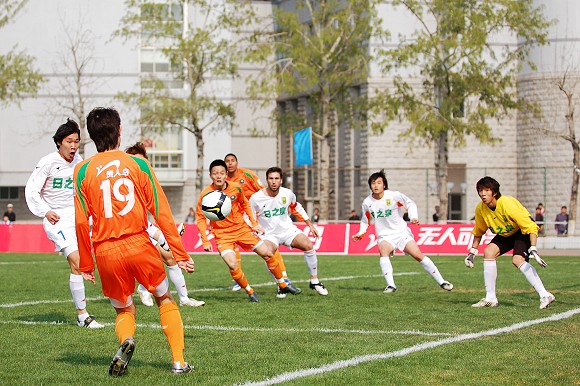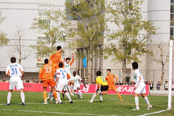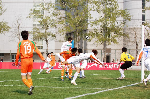第35分鐘北理工10號孫上突入禁區射門被守門員撲出,學生軍獲得角球,9號阿爾法主罰角球,球被解圍出禁區,學生軍6號于飛吊射被守門員撲出。
