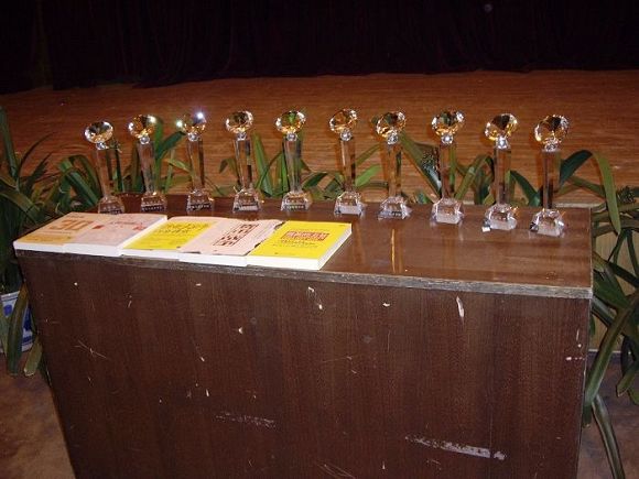 在場嘉賓及上屆獲獎同學(xué)為獲獎?wù)哳C發(fā)獎杯、獲獎證書及獎品成為晚會的高潮。