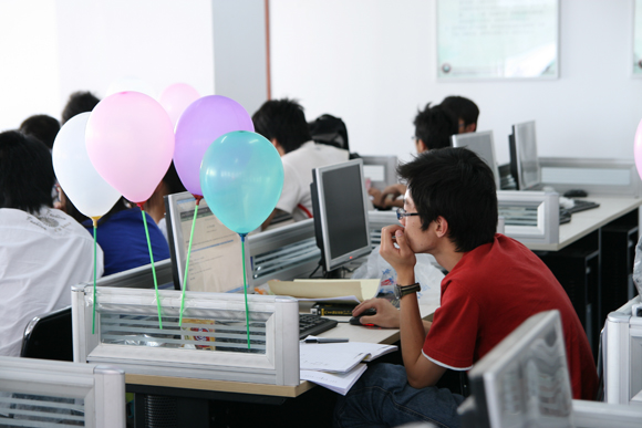 在6個小時的比賽過程中,參賽選手們都發揮了自己最好的水平。他們自備了水、面包等補充體力的食物,準備在6個小時中對自己的腦力和體力進行雙重的挑戰。比賽過程中,參賽隊每做出一道題,都會給其隊伍添加一個代表相應題目顏色的氣球。借此給現場的選手提示出哪些題目較易攻克,更為比賽現場增添了十分輕松活躍的氣氛。