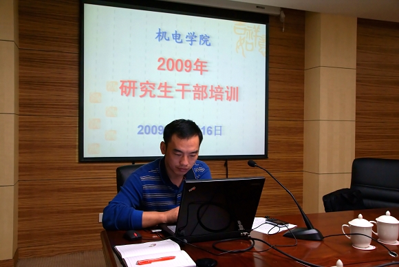 為了適應新的形勢,提高學生干部的整體素質, 2009年5月16日,機電學院舉行了研究生學生干部培訓大會。機電學院分黨委副書記、副院長楊瑞偉,學院研工委陳軍、解海寧,機電學院研究生會主席、各部門部長及干事,07、08級碩士、博士各個班級的班干部參加了會議。