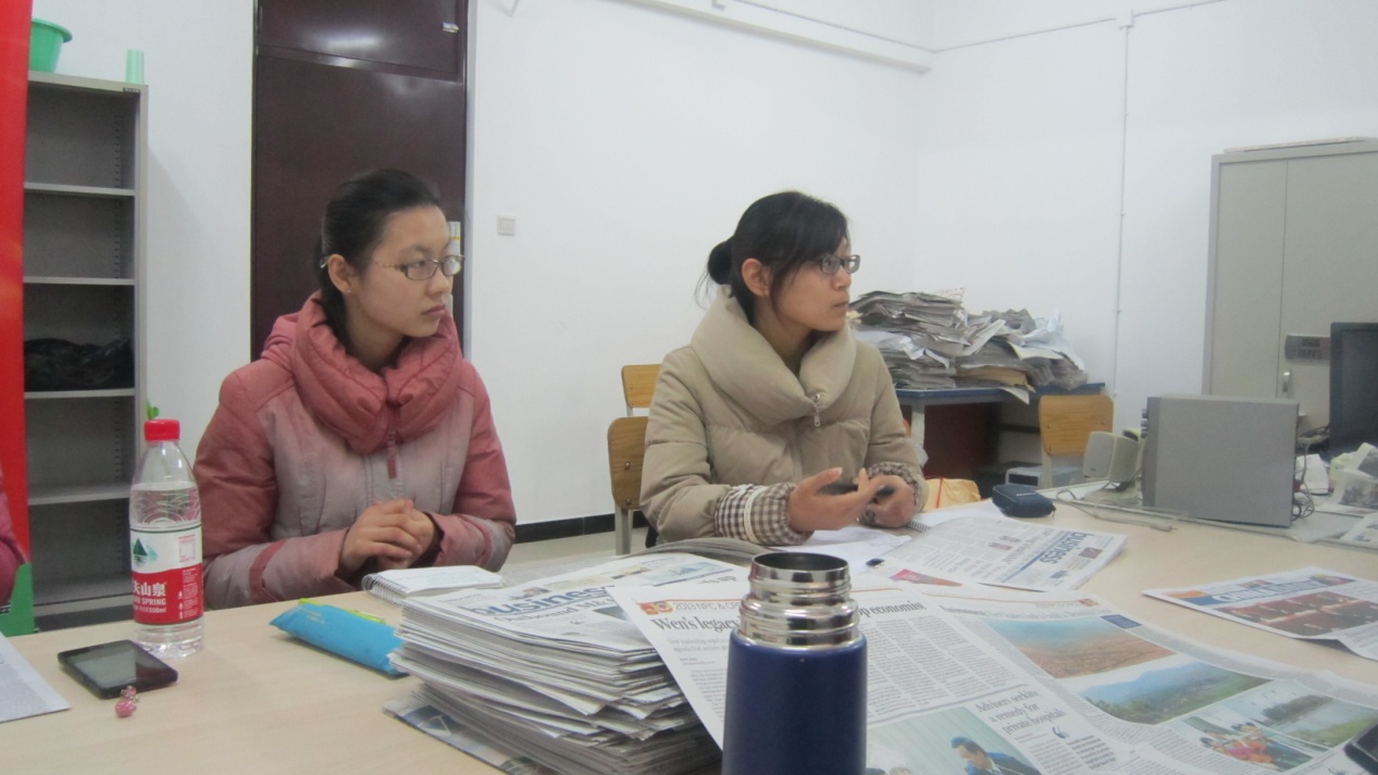 2013年3月22日下午,外語新聞社的同學(xué)們齊聚良鄉(xiāng)校區(qū)靜園B地下108室,開展主題為“如何做好新聞標(biāo)題翻譯”的學(xué)習(xí)研討會。在外國語學(xué)院曹莉老師的指導(dǎo)下,同學(xué)們積極發(fā)言,進(jìn)行了熱烈討論。外語新聞社指導(dǎo)老師趙琳也出席了本次研討會。