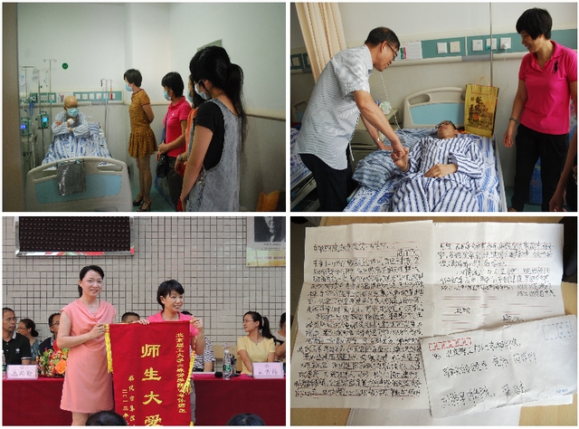 5月25日活動開始,很多同學到募捐點獻出自己對龔健同學的關愛,更有班級自發組織募捐活動。關愛龔健同學的,不僅有師生,還有樓管阿姨、畢業的校友、教師的家屬等等。經過師生們的共同努力,共籌得善款4萬余元。