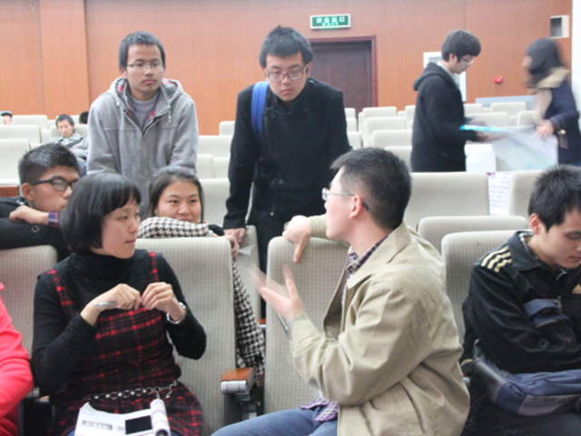 在自由交流環(huán)節(jié)中,13級(jí)同學(xué)們積極的和學(xué)長(zhǎng)學(xué)姐們交流,提出目前的困惑和對(duì)未來(lái)的選擇,10級(jí)同學(xué)也細(xì)心的回答學(xué)弟學(xué)妹們的問(wèn)題,在迷茫中指出方向,讓大一的同學(xué)們能夠更好地融入大學(xué)的學(xué)習(xí)生活。